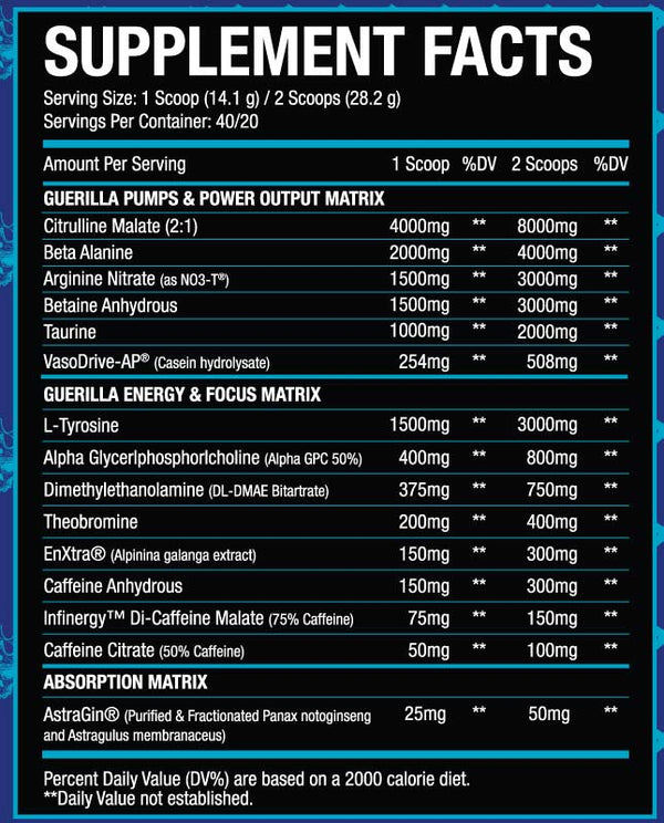 El Jefe Guerilla may provide an epic pre workout experience without exotic stimulants. Long lasting energy from 3 different forms of caffeine and other stimulants that amplify the stim experience.*